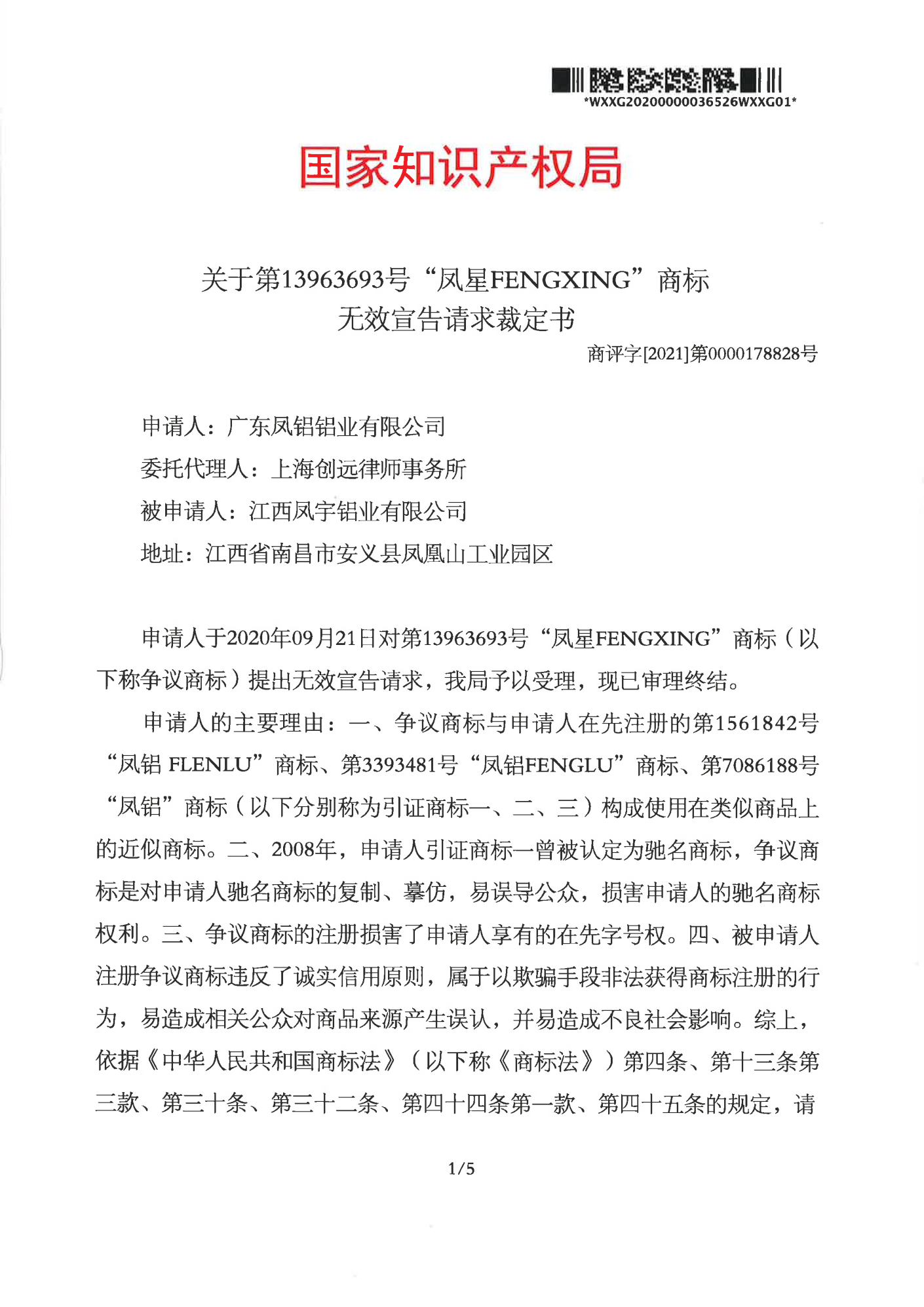 安康辉知队 | 国家知识产权局:“凤星”商标无效