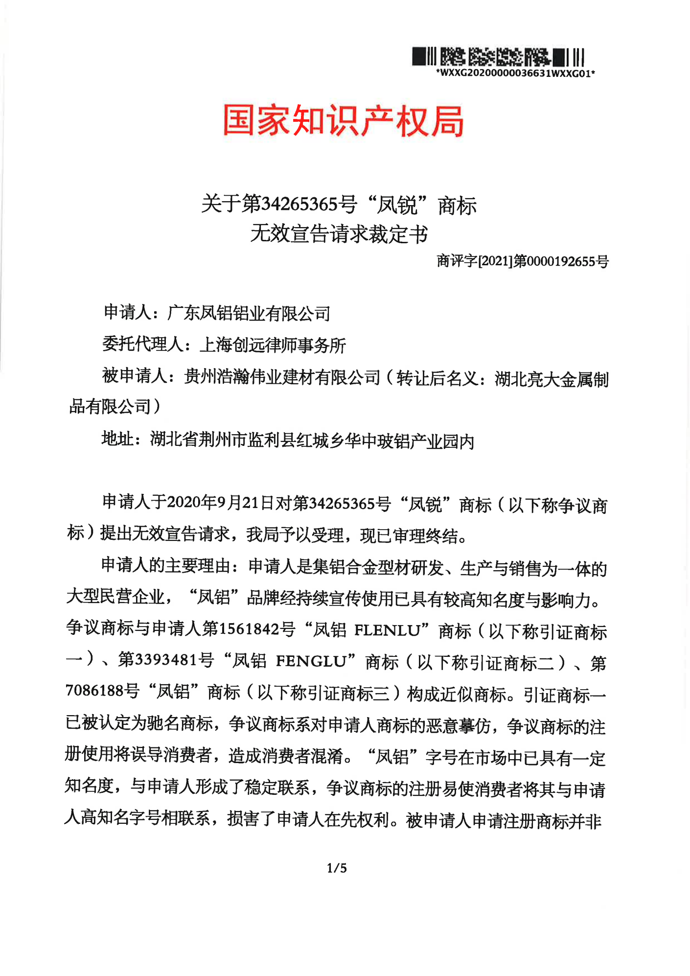 安康辉知队 | 国家知识产权局:“凤锐”商标无效