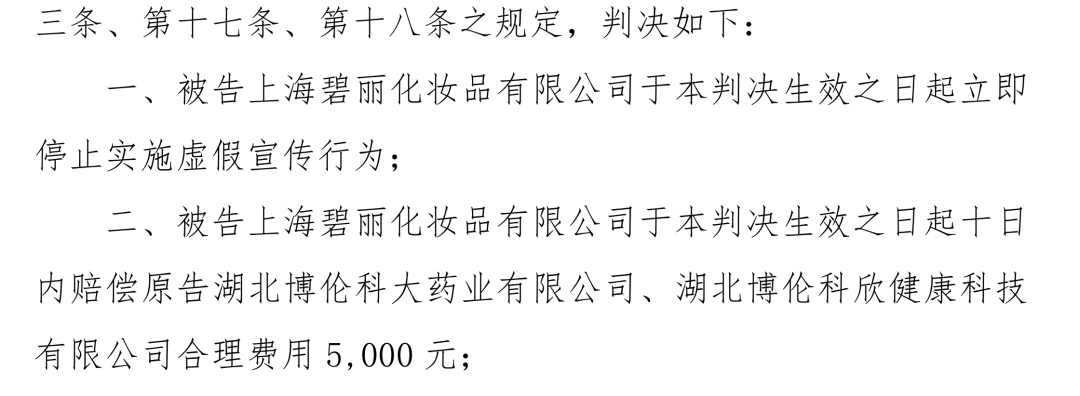 对于原告要求被告停止在淘宝、拼多多、微博、微信公众号上实施虚假宣传的不正当竞争行为,并删除上述平台上的涉案相关链接或信息的诉讼请求,法院予以支持。对原告主张的5000元维权合理费用支出,全额支持(见下图)。