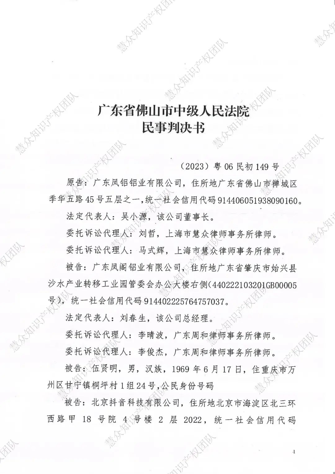 安康判赔800万!辉知队代理“凤铝”商标维权案胜诉